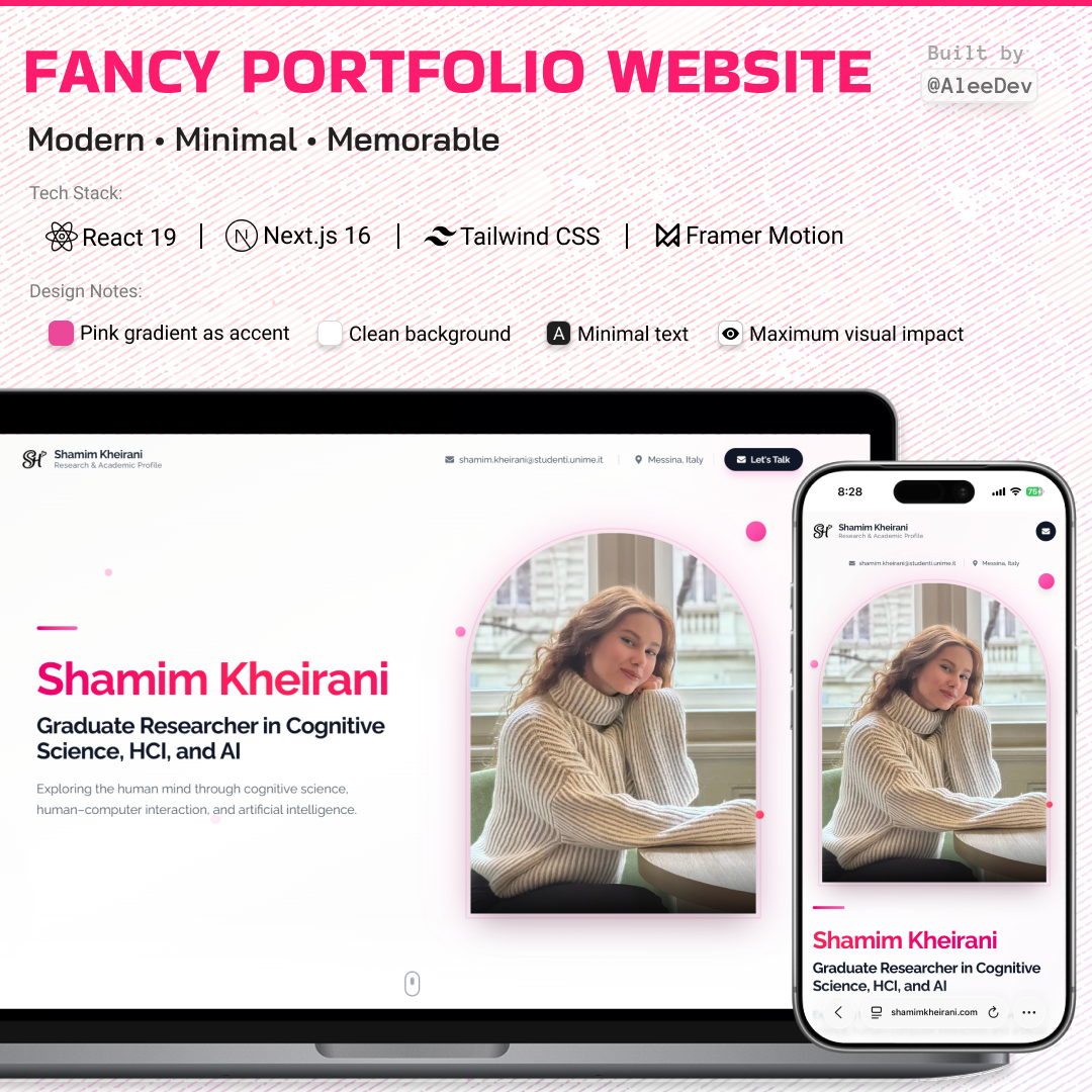 For the past two years, I've been a full-stack developer, making fun web apps with React.js and Next.js. But before I learned how to code, I actually spent five years working as a graphic and motion designer. Because I spent so much time staring at pixels, I developed this funny habit: the madness of paying attention to details.